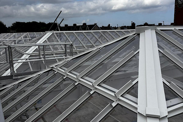 We carefully and removed the old glazing and allowed for other trades to carry out the essential repair works. Once the Painting was completed, we installed the new Twinfix glazing system along with lining the cast iron gutters with Alumasc gutter system liquid liner.